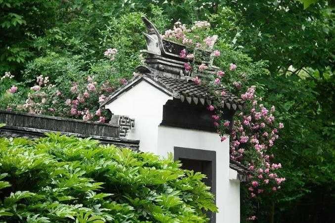 水晶帘动微风起,满架蔷薇一院香。