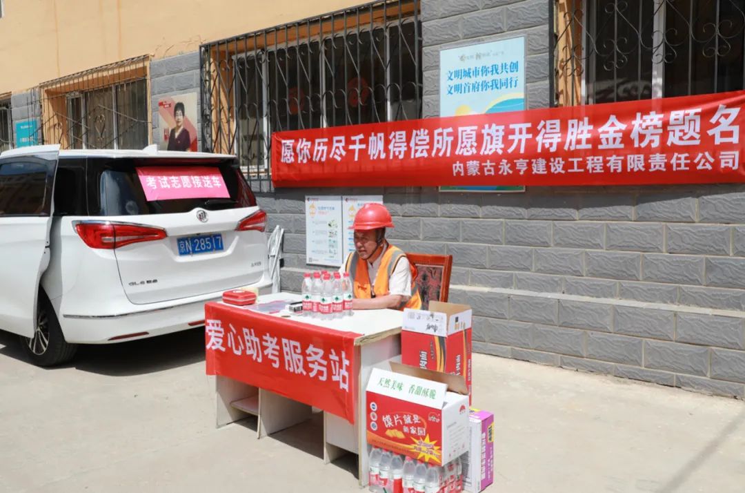 6月7日,高考第一天上午,在赛罕区大学东路街道煤气小区、外事车队小区、黄金支队八号楼和邮电小区,看不到工人施工,整个工地静悄悄的。每个施工小区悬挂有助考条幅,为考生加油打气,同时还设立服务点,为考生准备了矿泉水、消毒湿巾、藿香正气水、橡皮、急救药箱等防暑降温药品和考试用品,随时为考生及家长提供贴心服务。