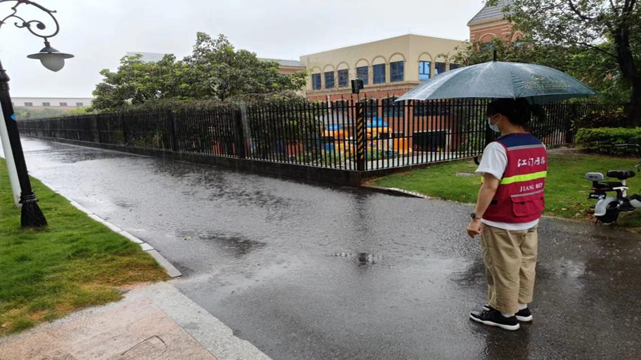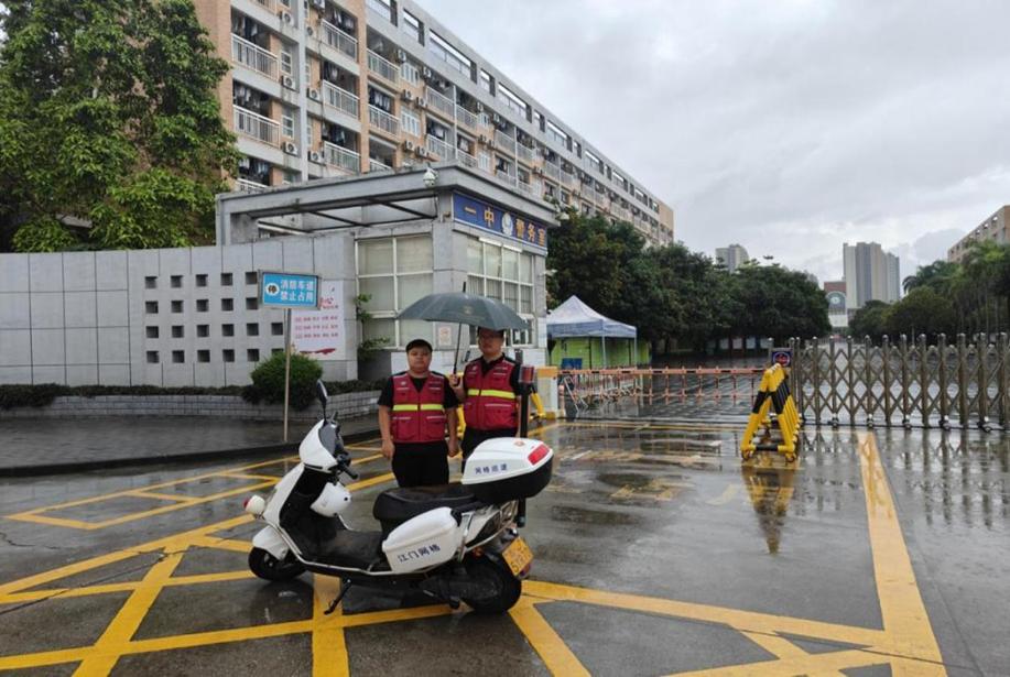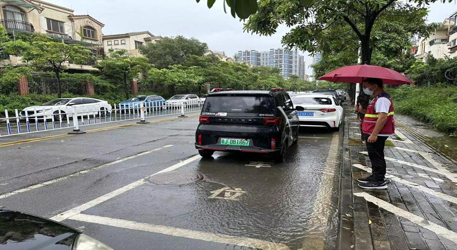 与此同时,网格员区芯怡、陈健明到辖区低洼路段巡查内涝安全隐患,将存在隐患的区域报相关部门及时处理,为考生出行提供便利。