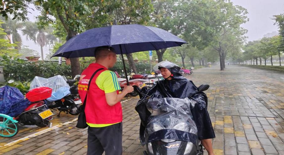 上午12点,雨势越来越大,外海街道网格员依旧坚守在考场门口,助力避免下班交通拥堵,及时护送考生平安回家,受到了广大群众的一致好评。