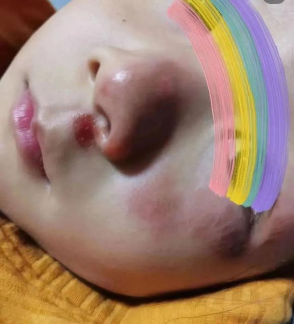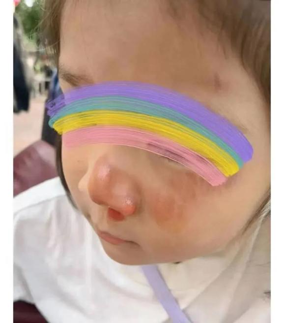 入场时,Q女士拉着女儿进入剧场的通道。“其中一个黑衣服从我女儿背后故意推倒或者撞倒我女儿,孩子整脸贴地飞出去三四米,我在巨大的冲击下也被甩出去了,那个黄牛头也不回跑到剧场里占位。我抱起来女儿,她整个人吓得直哭,手腕被折在地上,大部分脸被擦伤出血流脓水,膝盖站不起来了,还有一个眼眶也是严重擦伤。”