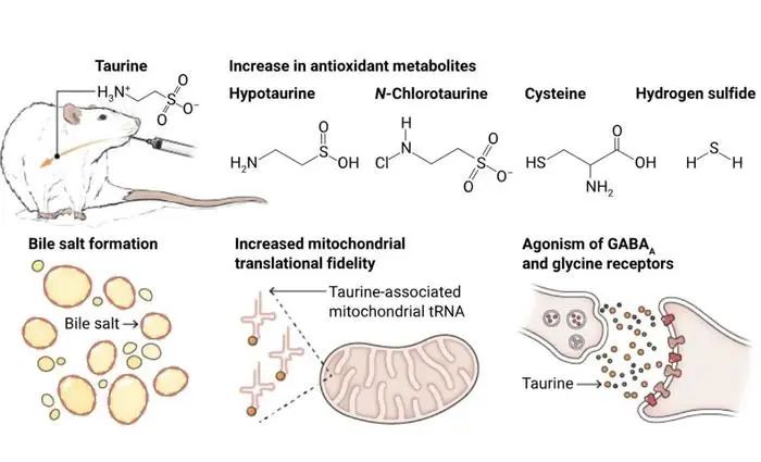 ▲ 牛磺酸的作用机制(图片来自 Science)