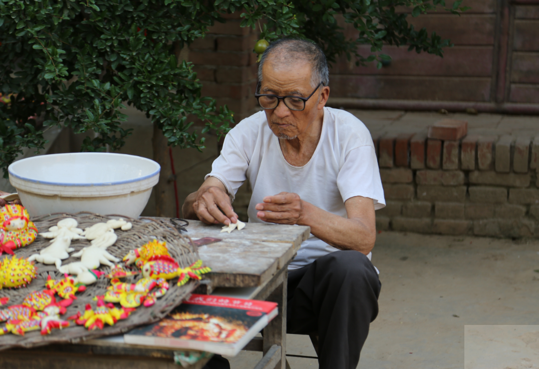 郎庄面塑在当地俗称“面老虎”,是我国国家级非物质文化遗产。它的工艺独特,经和面、发酵、捏制、蒸熟、晾干上色等十几道工序制成。