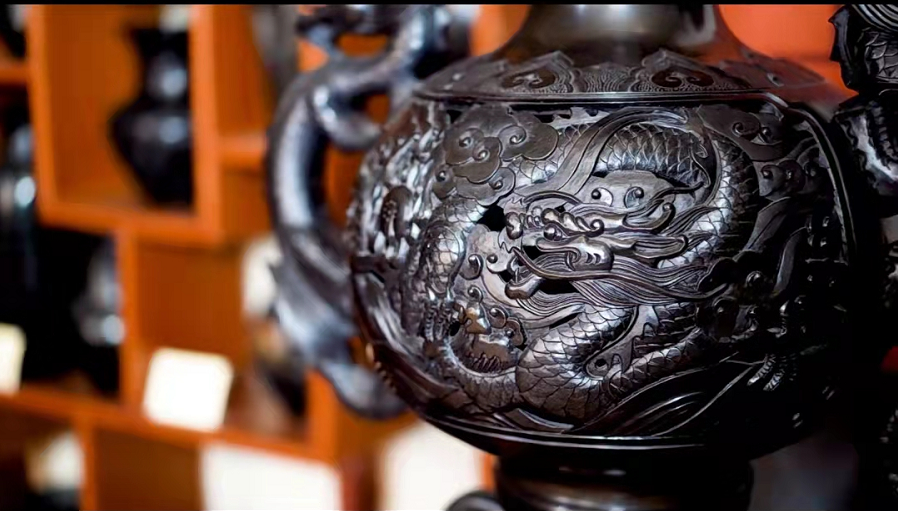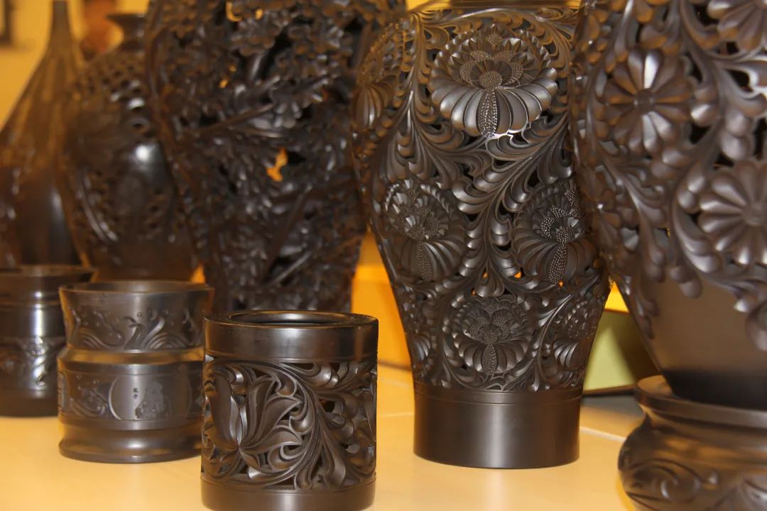 早期的黑陶,主要用作大型祭祀中的礼器,是权力和身份的象征。而今天,茌平黑陶一样续写着传奇是市级非遗项目。黑陶制作的题材广泛、内容丰富造型优美,具有黑如漆、明如镜、硬如瓷、声如磬四大特色。