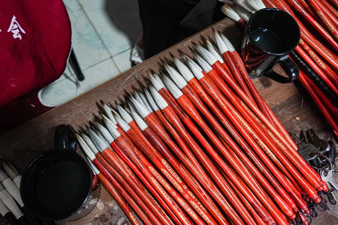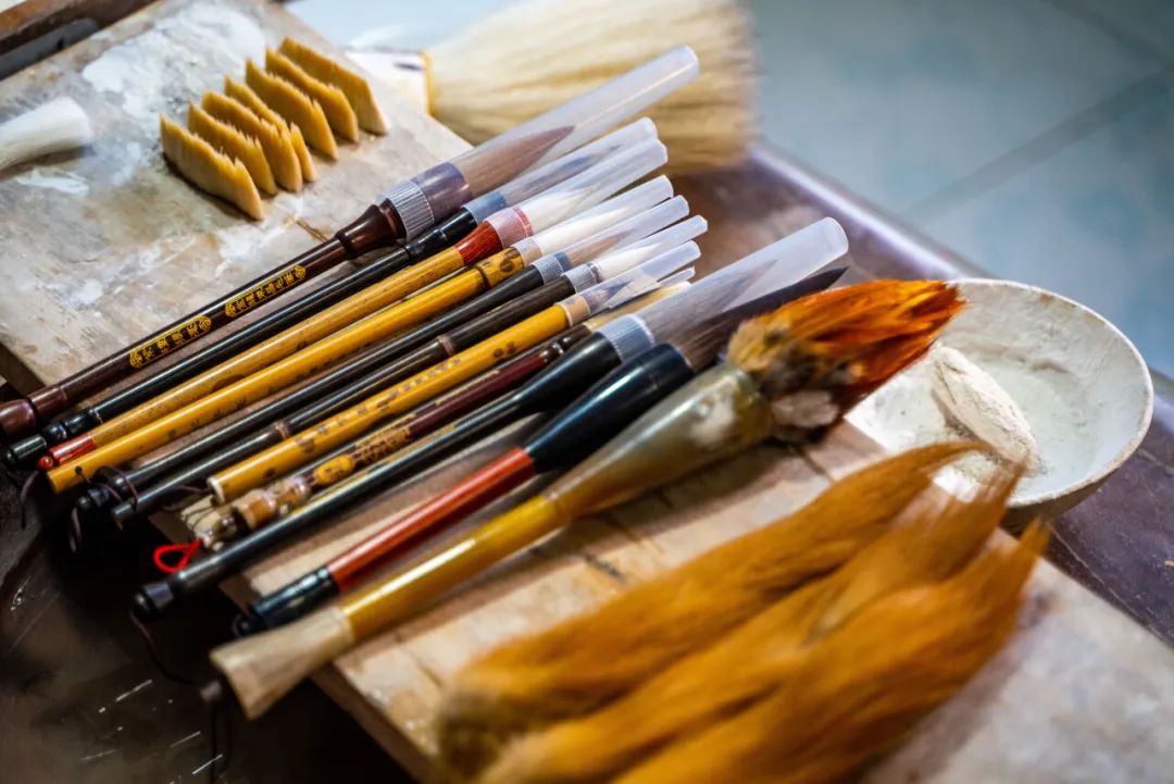 它从原木到成型,需要经历选料、干燥、配料、榫卯、雕刻、组装、二次干燥、打磨、打蜡等多种工序,在描线、起底、修光、细刻等流程后,它才能变成生动传神,精美细腻的模样。毛笔是古代的先民们在一次一次的实践中发明出来的,东昌毛笔的制作始于元朝,兴盛于明代中叶至清道光年间,至今已有600余年的历史。