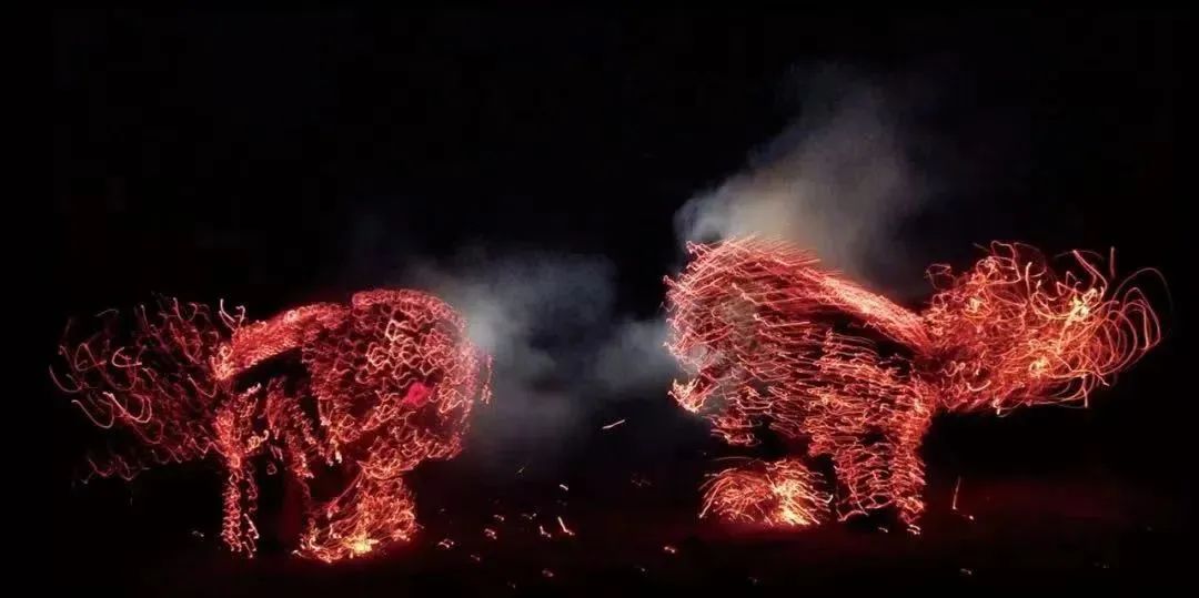 火狮子舞因狮毛是由3600根火捻组成,演出时点燃火捻,火星四溅,由火光线条构成的火狮子火星闪烁,堪称奇观。表演时,观众只看到由细碎的火星勾勒出的威武高大的狮子形象,却看不见舞狮子的人。当火狮子追逐跳跃时,浑身星光闪闪。火星不停地抖落,在其晃肩抖毛时,通身火星四溅,顺着风势,忽明忽暗,火星闪烁。