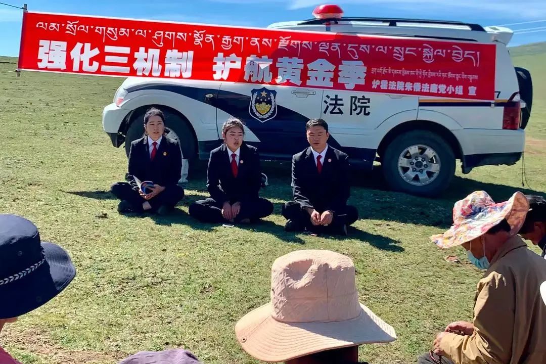“正义雪莲”女子审判团队与干警组成宣传小分队,深入辖区,结合虫草采挖、交易等各环节矛盾纠纷易发点,通过“巡回讲+集中讲+上门讲”,宣讲矛盾纠纷正确处理方式、虫草采挖期间的安全知识以及民间虫草交易的方式和交易中存在的风险,根植群众遇事找法、办事依法的法治意识。