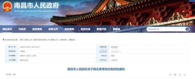 免去杨志勇的原南昌市职工科技大学副校长职务;