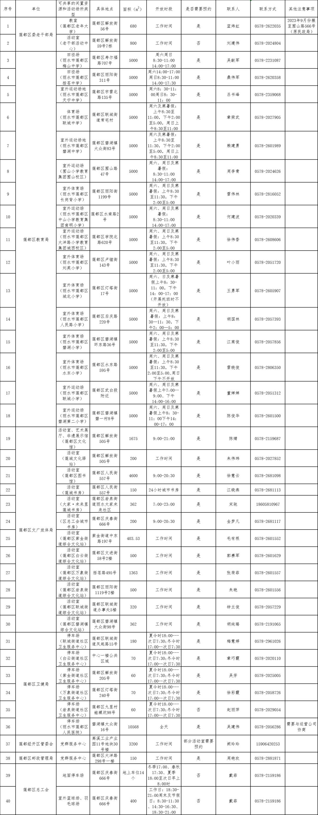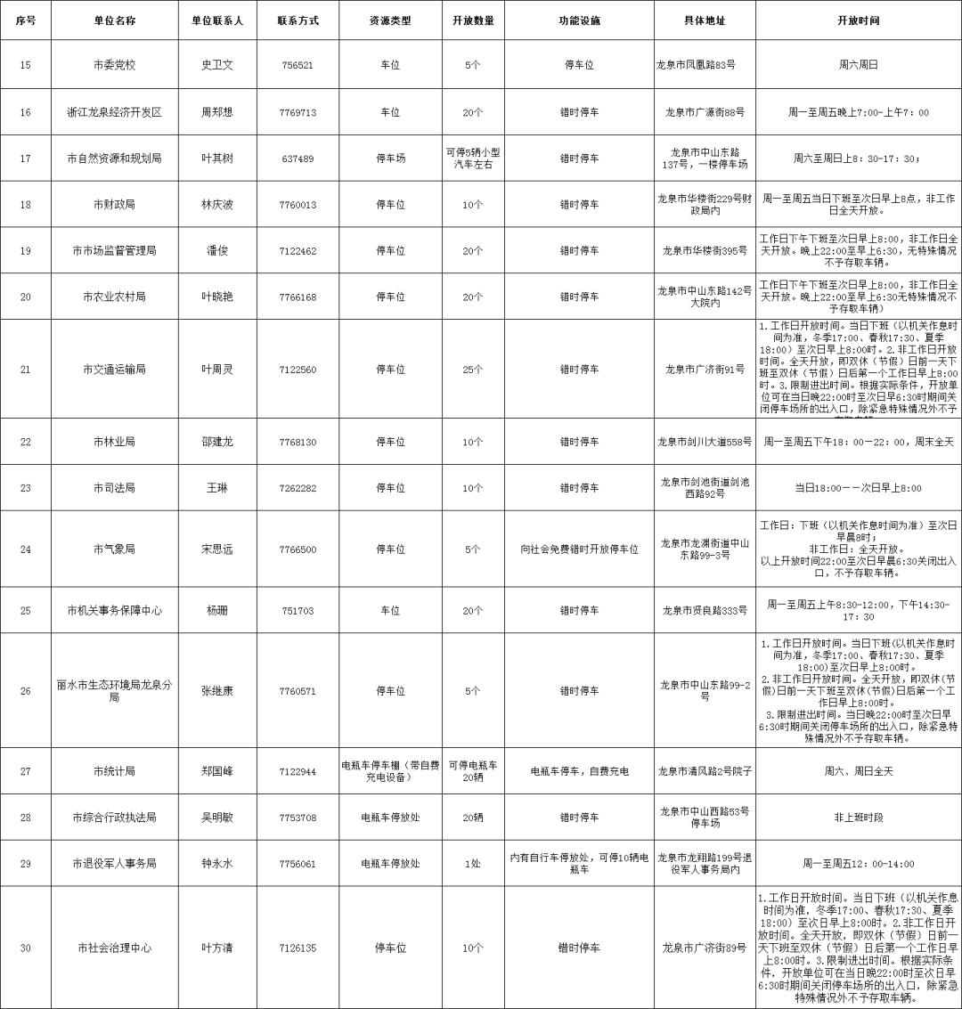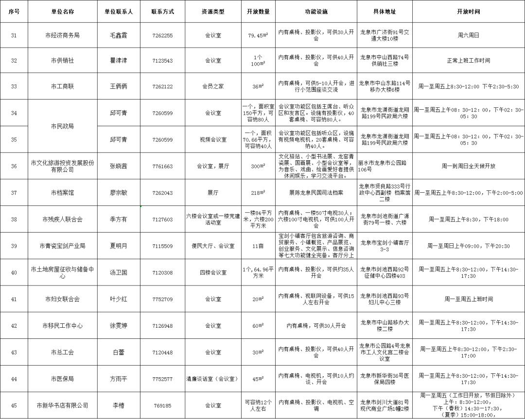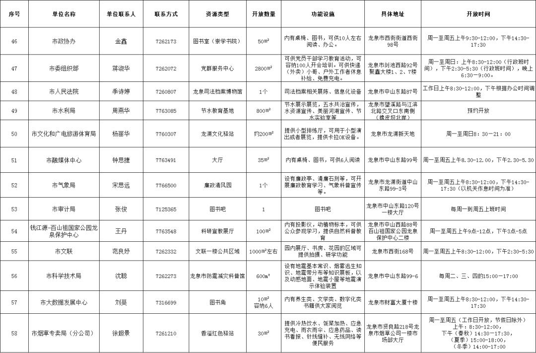 龙泉市机关企事业单位开放共享资源清单