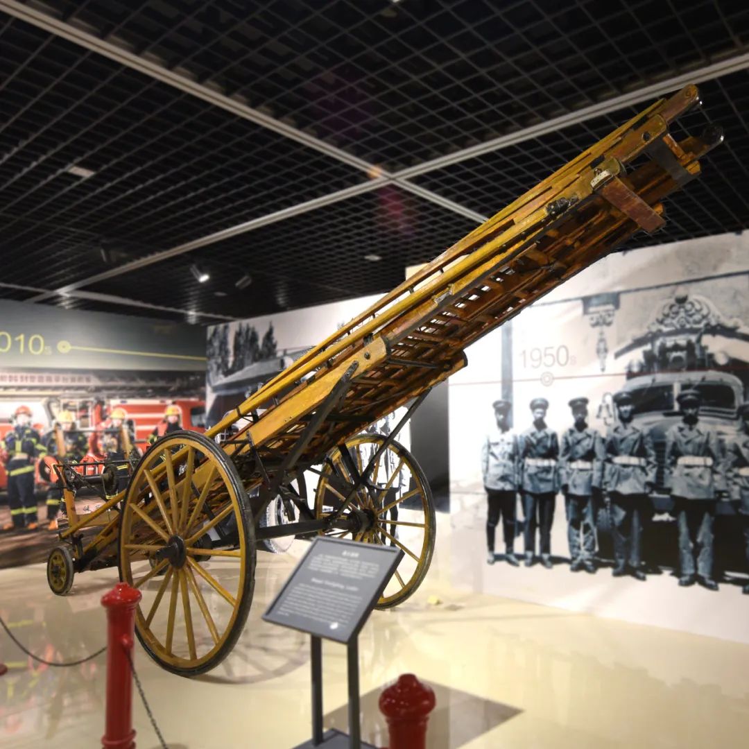 藏品简介:摇梯为木制,支架轴承等部分构件为铁制,有专门摇柄。据考证,摇梯已于19世纪末20世纪初开始在国内使用,作为消防队的重要灭火辅助器材收录至1935年出版的《中国消防警察》一书,一直沿用至20世纪50年代。