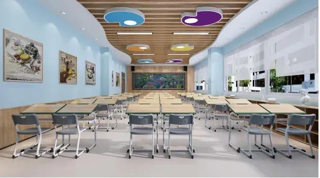 先进的教室:独特的躺椅课桌,让孩子不用趴在课桌午休,每个教室配备两台空调、智能一体化黑板、直饮水等设施,家长们可以随时进校聆听教师上课并掌握孩子的学习情况。