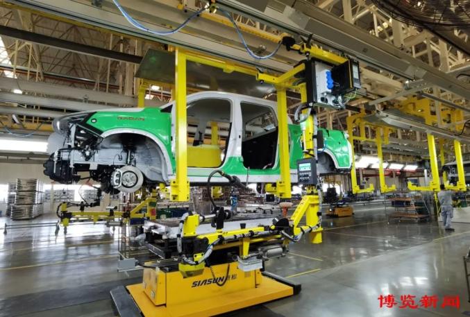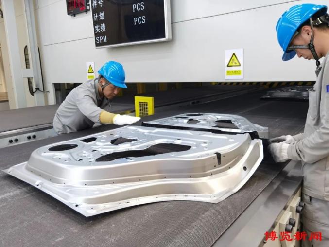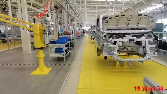 冲压车间里,5200吨压力机火力全开,一块块钢板瞬间被冲压成线条流畅的覆盖件;焊接车间里,机器臂起落间火花四溅,像雕塑大师般拿捏着钢铁的筋骨;喷涂车间里,一辆辆白车身像鱼儿一样跃入电泳池中……