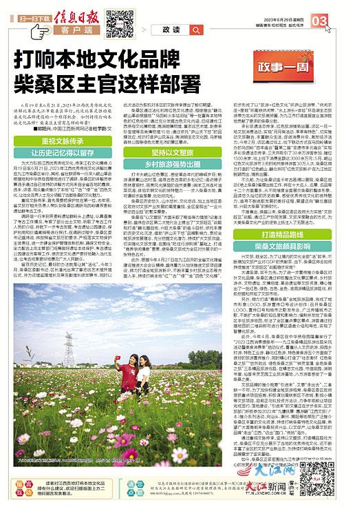 6月19日至6月21日,2023年江西优秀传统文化讲解比赛在九江市柴桑区举行,此次比赛是推动柴桑文化品牌建设的一个难得机会。如何持续打响本地文化品牌?柴桑区主官有怎样的部署?