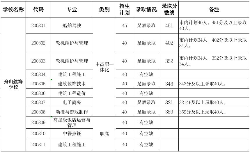 原标题:《舟山市2023年高中段(市内中职、技工学校)平台录取情况公布!》