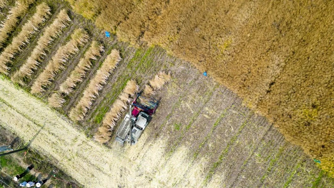 使用该技术种植的油菜联合收获现场(该技术科研团队供图)
