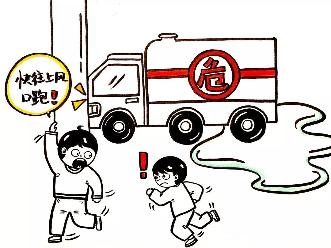 4. 遇到危化品运输车辆发生事故,应立即离开事故现场,撤离到上风口位置,不围观,并立即呼叫救援电话。