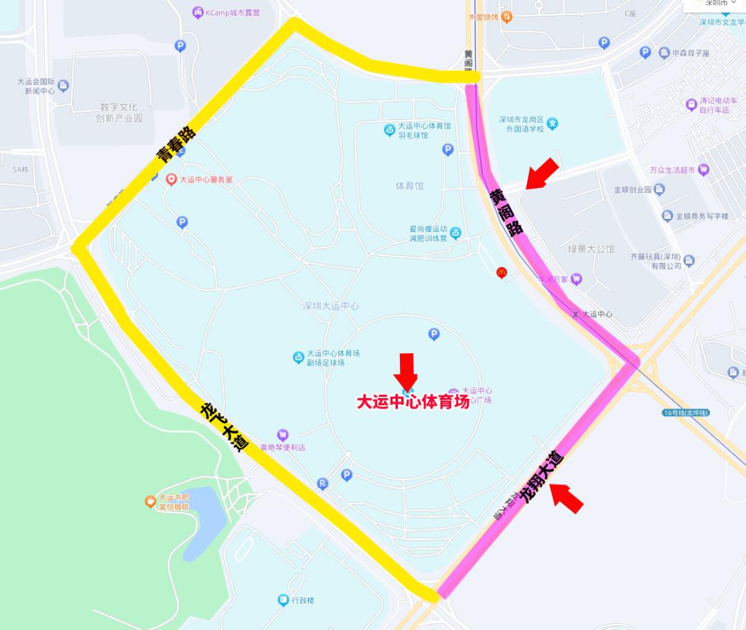 青春路、大运路等大运中心周边道路