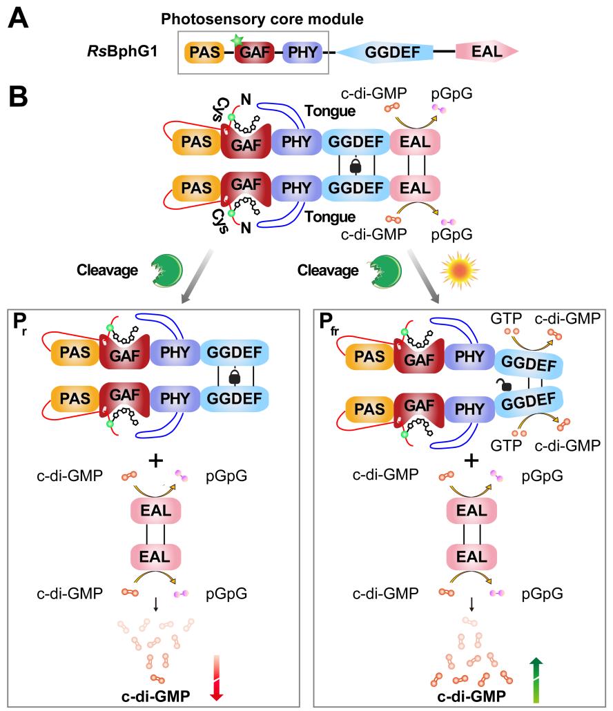 何进教授团队注意到,目前关于c-di-GMP的研究多集中于该信号转导通路的下游,如c-di-GMP调控网络的挖掘和新型受体的鉴定上,但关于c-di-GMP代谢酶如何响应上游信号刺激的研究尚很有限。这种研究趋势忽略了细菌DGC/PDE信号感知的重要性,导致c-di-GMP信号转导网络的研究并不完善。