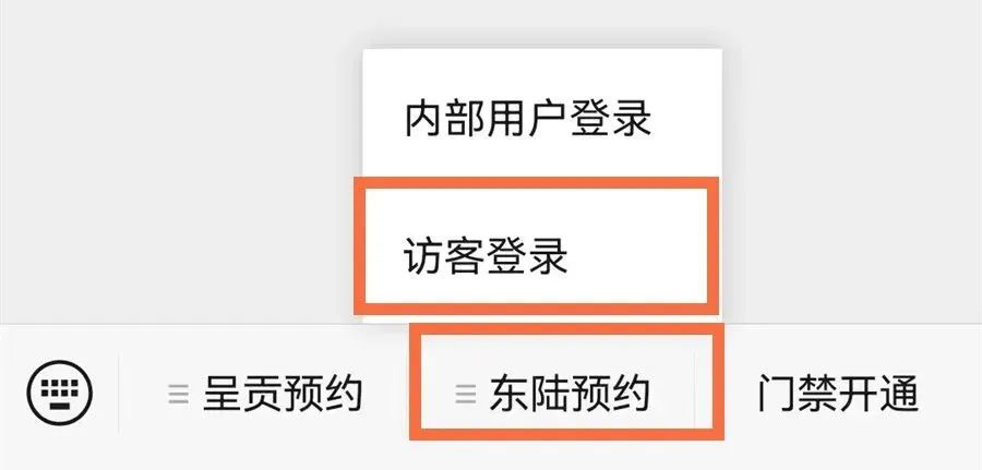 ②进入菜单页,选择东陆预约,点击“访客登录”;