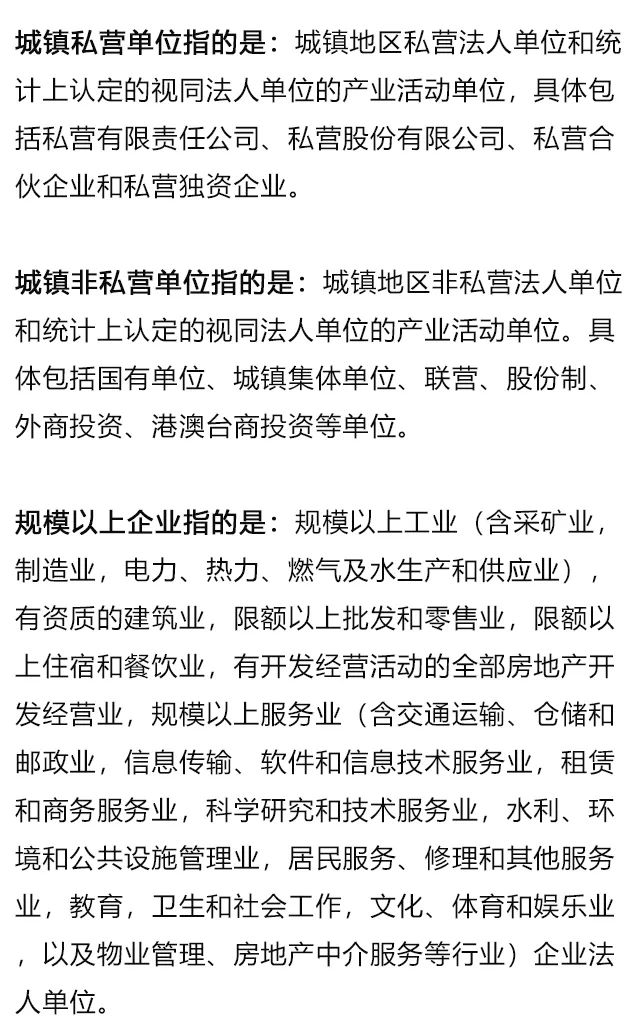 1、城镇单位指:城镇地域内就业人员在5人及以上的法人单位,不包括个体工商户和自由职业者。