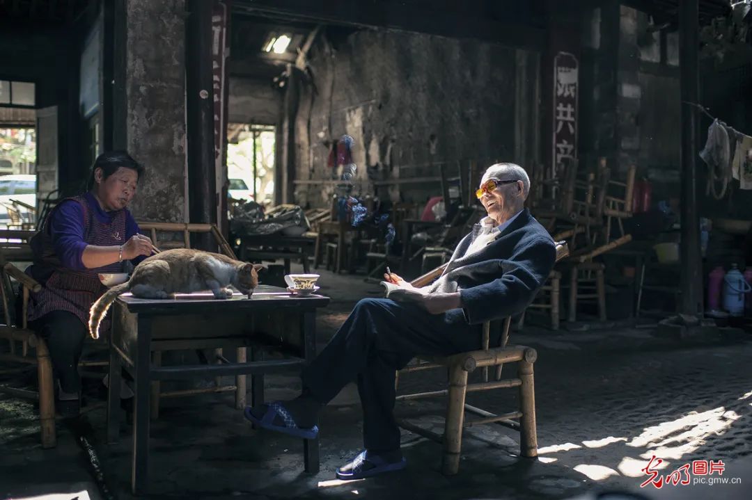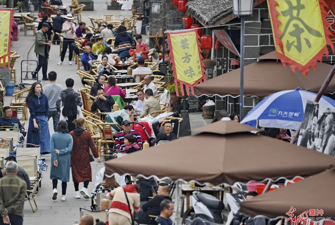 2023年3月15日,在成都市双流区彭镇老街,众多游人在这里喝茶、摆龙门阵、拍照打卡、观光休闲,充满着浓浓的烟火气。(李向雨摄/光明图片)