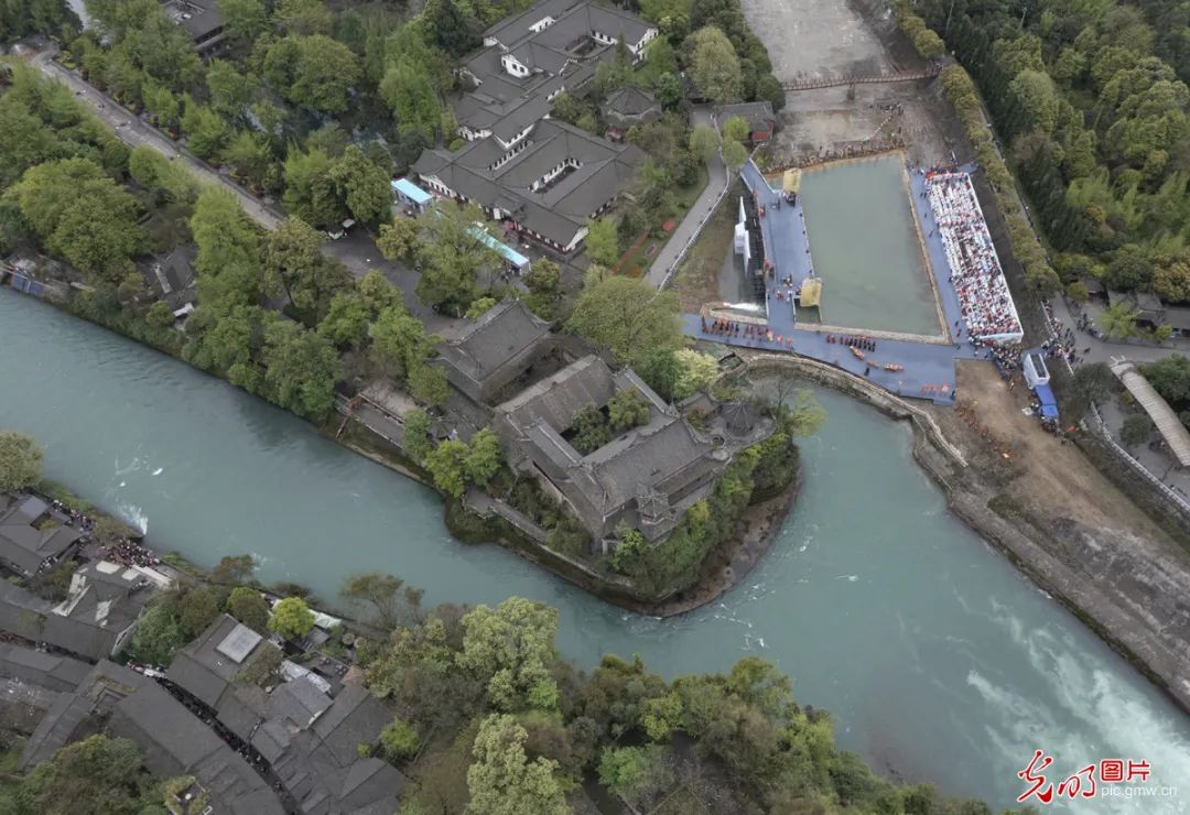 2023年4月5日,清明节,2023都江堰放水节在都江堰景区飞沙堰溢洪道隆重开幕。(刘国兴摄/光明图片)