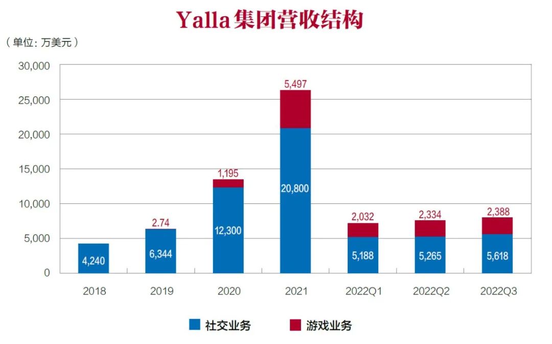 Yalla集团2022年第三季度财报显示,季度内实现营收8006万美元,同比增长12.3%,净利润为2442万美元,月活用户突破3000万,其中付费用户为1150万。