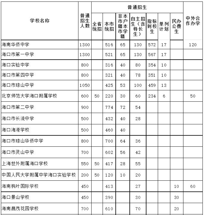 原标题:《速看!海口公布9所重点高中指标到校计划》