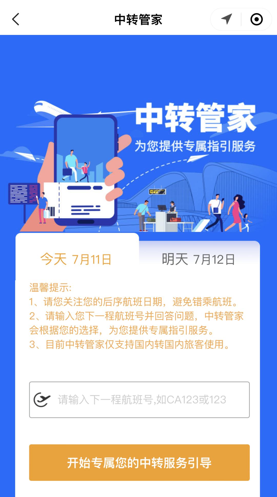 为进一步满足您的中转引导需求,大兴机场开发“中转管家”线上定制中转引导服务产品,该线上服务平台以一站式办理的思路,实现对不同类型中转旅客的精准流程引导,并同步为中转旅客提供各类商业攻略推荐,让旅客更好地享受大兴机场中转服务。当前“中转管家”仅支持国内中转旅客使用。
