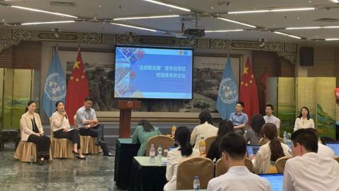 7月12日下午,2023“走进联合国”青年访学团走入联合国难民署总部。