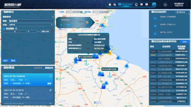 ▲能源大数据(碳监测)中心显示对重点企业监控