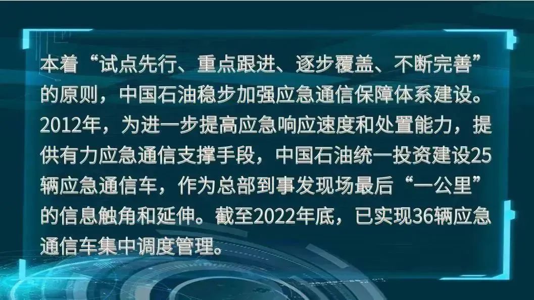 中国石油全面贯彻落实党中央、国务院关于加强应急管理工作的要求,大力建设应急通信保障体系,打通总部到应急现场最后“一公里”的信息瓶颈。