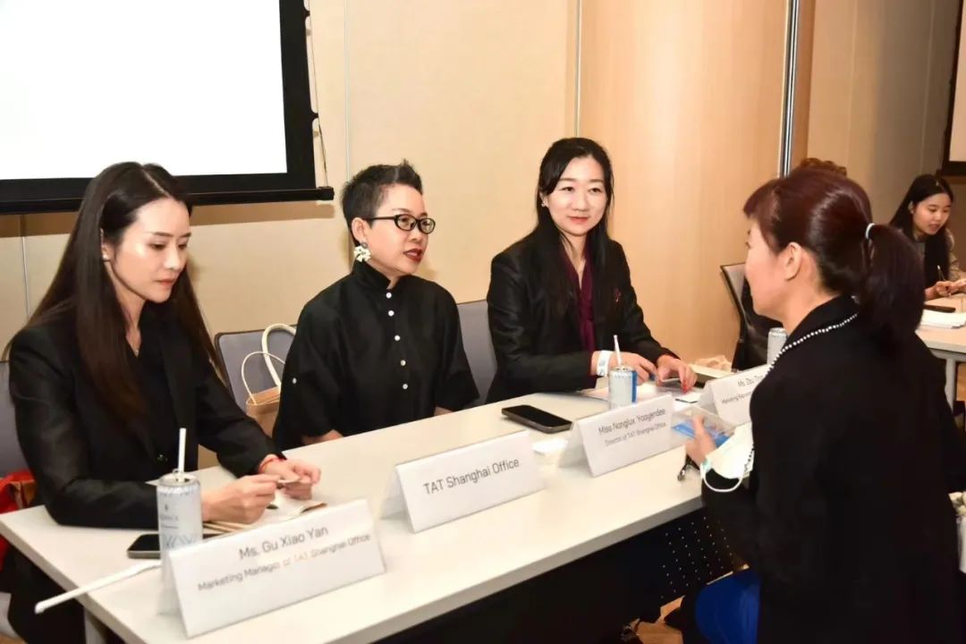 泰国国家旅游局上海办事处处长罗兰女士率市场经理顾晓燕女士、武汉市场代表周婷女士等代表一同参与发布会,并且在会议中与来访的泰国业者进行了深入的交谈和信息的交换,为推动泰国和中国特别是华东地区中泰旅游的发展做出努力。