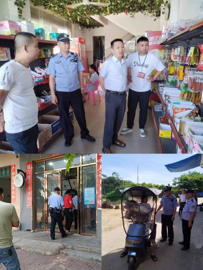 县教育局、县公安局、县市监局、县旅文局作为组长单位分别牵头“校园安全管理”“校园周边社会环境综合治理”等6个联合执法检查组,先后前往澄迈县第二中学、澄迈县实验小学等学校,以及校园周边的超市、小吃店、水吧、休闲吧,托管中心、培训中心等,开展校园安全、食品安全、消防安全、非法出版物等检查,督促各经营主体加强管理,严格落实主体责任,确保经营活动合法合规。联合执法检查组还对营业性娱乐场所、酒吧、酒店、宾馆等重点场所开展巡查监督,加大对校园门前及周边道路交通违法行为的巡逻密度和频次,严管学生违法骑行电动自行车、摩托车和乘车不戴头盔行为。