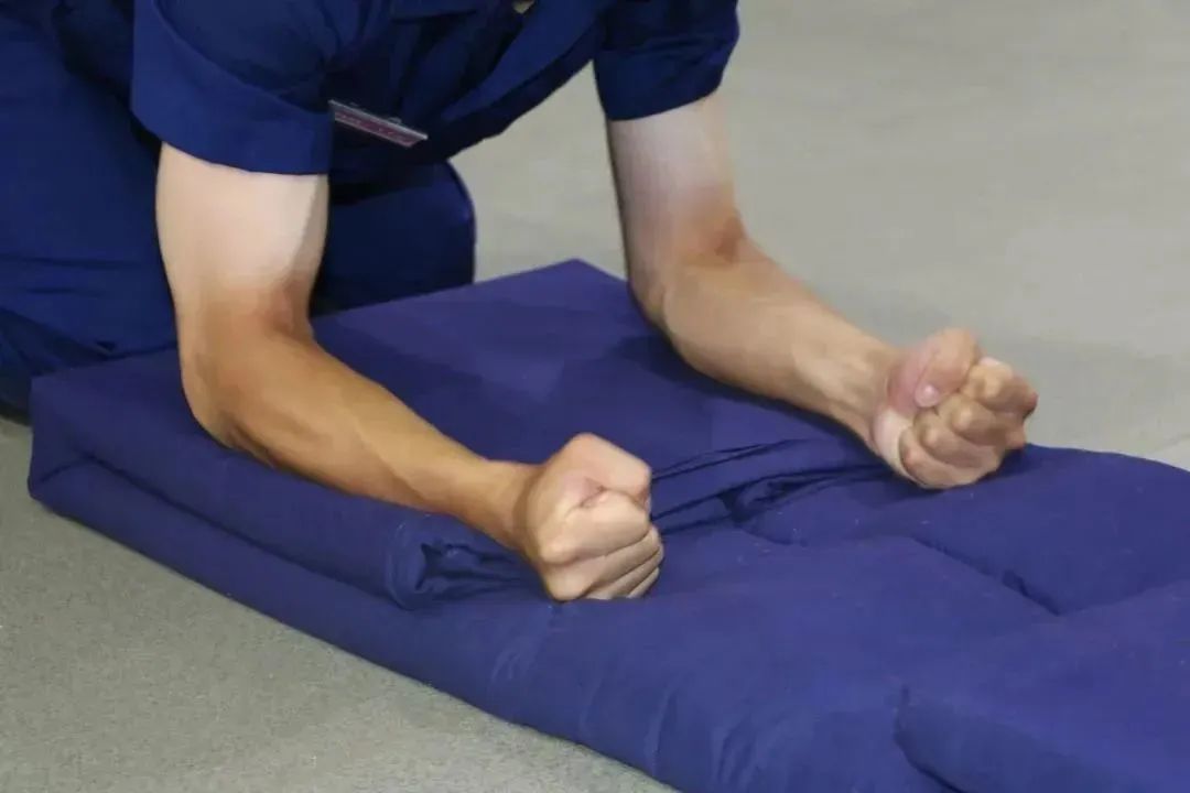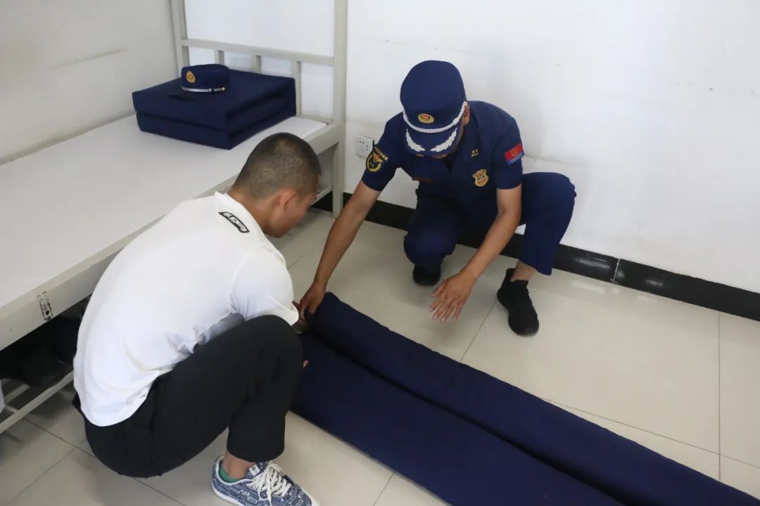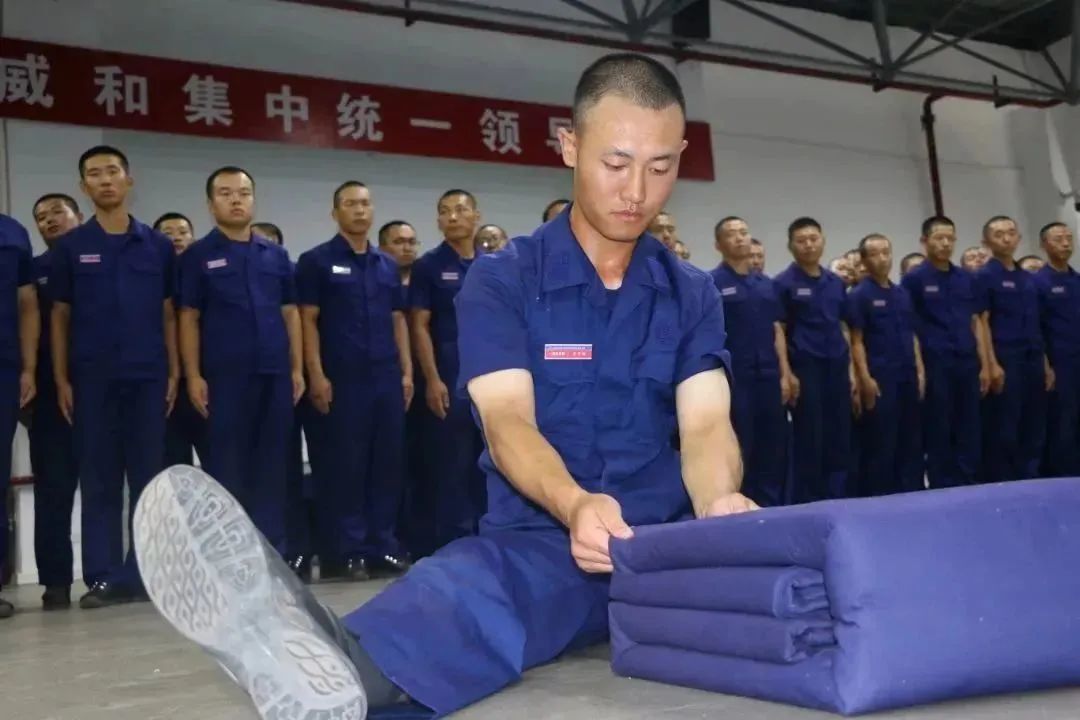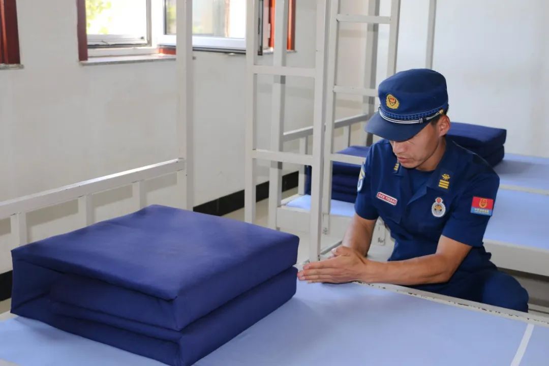 入队满一个月时,岗前培训大队还组织队员们开展了叠被子比赛。“预备——开始!”随着发令员一声哨响,比赛正式拉开帷幕,铺平、压实、翻折、抠角、捏线……整齐方正的被子迅速成型。