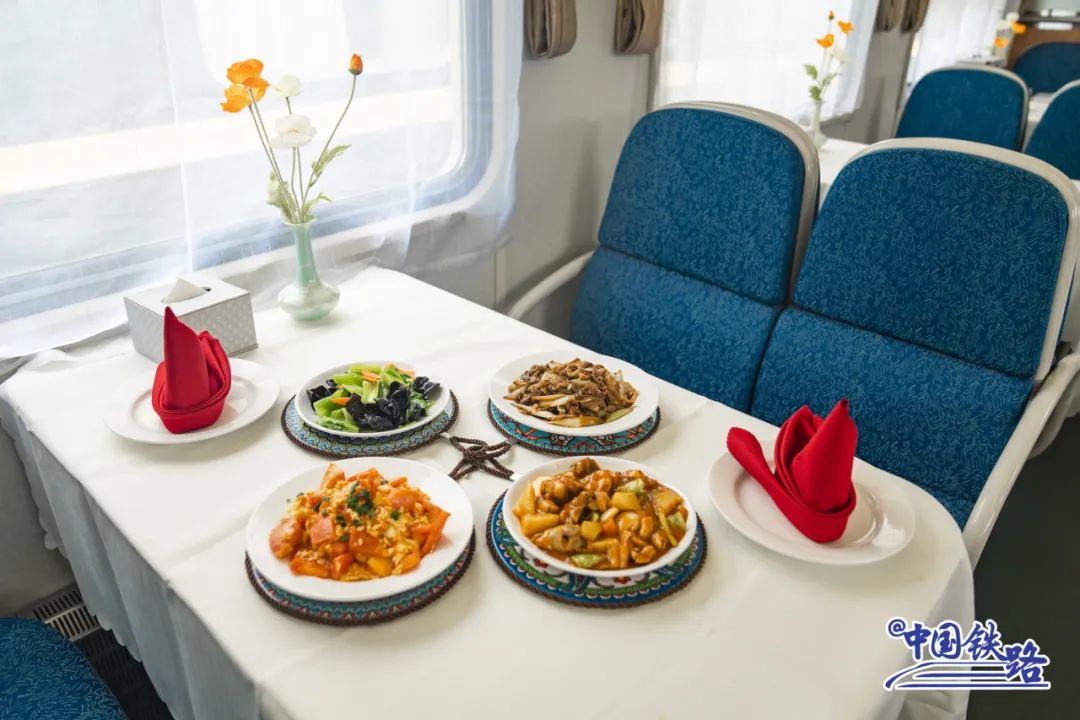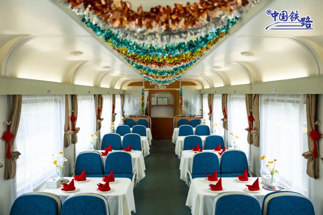 列车9号车厢为餐车,可同时容纳40余人同时就餐。