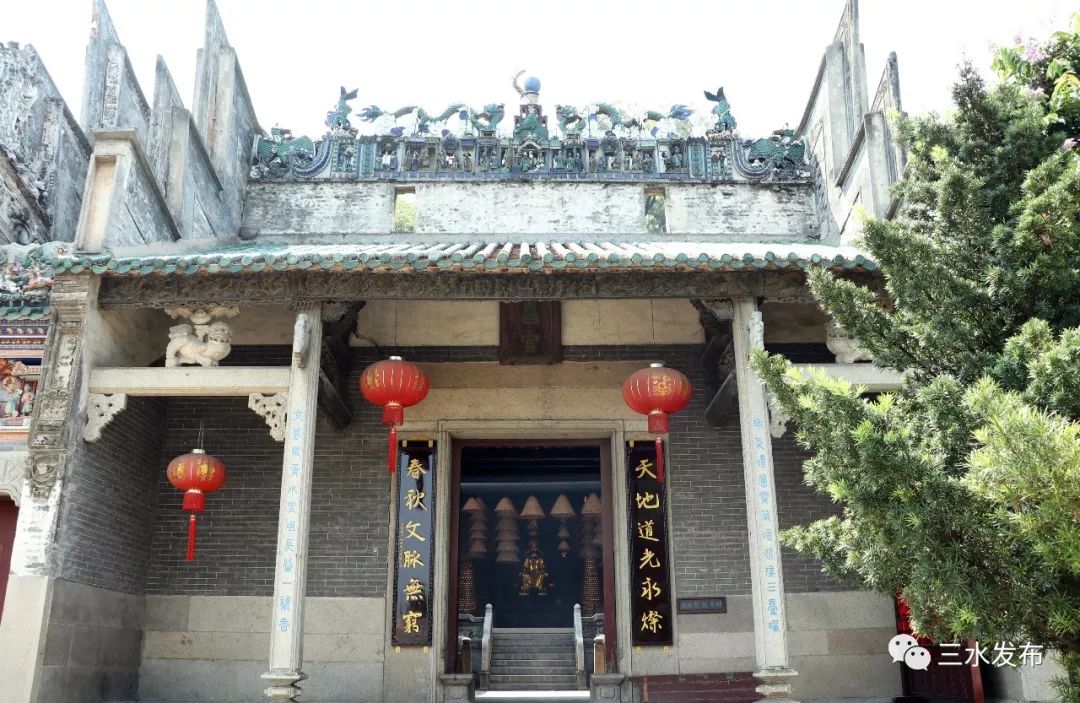 始建于南宋嘉定年间,是三水现存最古老的寺庙建筑,省级重点文物保护单位祖庙。以北帝庙作为主庙居中,左有观音庙,右有文昌庙,均有前后殿,庙内的陶塑、木雕、砖雕、灰雕、石刻、壁书等装饰,瑰丽精巧,栩栩如生。