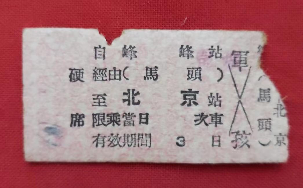 △上世纪六十年代的峰峰-永定门的车票