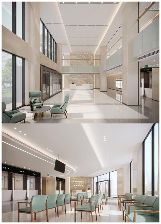 ☑ 设置北、西、南三组共7台电梯,层层开辟多个候诊大厅,建立清晰的导向标识,实现人员有序分流;