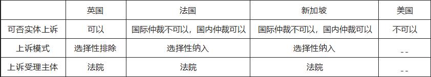 综上,将以上国家仲裁法对仲裁实体上诉的规定总结如下: