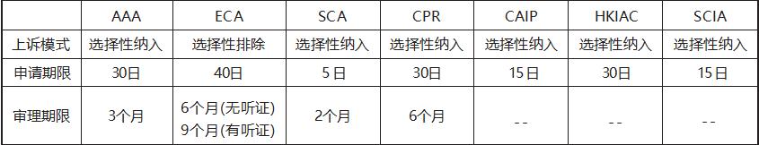 综上,将以上仲裁机构对仲裁实体上诉的规定总结如下: