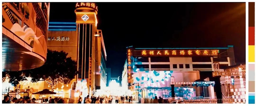 然而在观前街一带的高密度商业街区,传统的色彩体系正走向分崩离析。重重叠叠的广告牌、不断增加的夜间霓虹,拼贴混杂在一起,令人迷离纠结,正如被时代岔口上各种力量反复揉搓,不断飘摇。如何共同面对过去和未来?——色彩的故事生动的讲述了苏州历史文化名城需要长期探讨的问题。