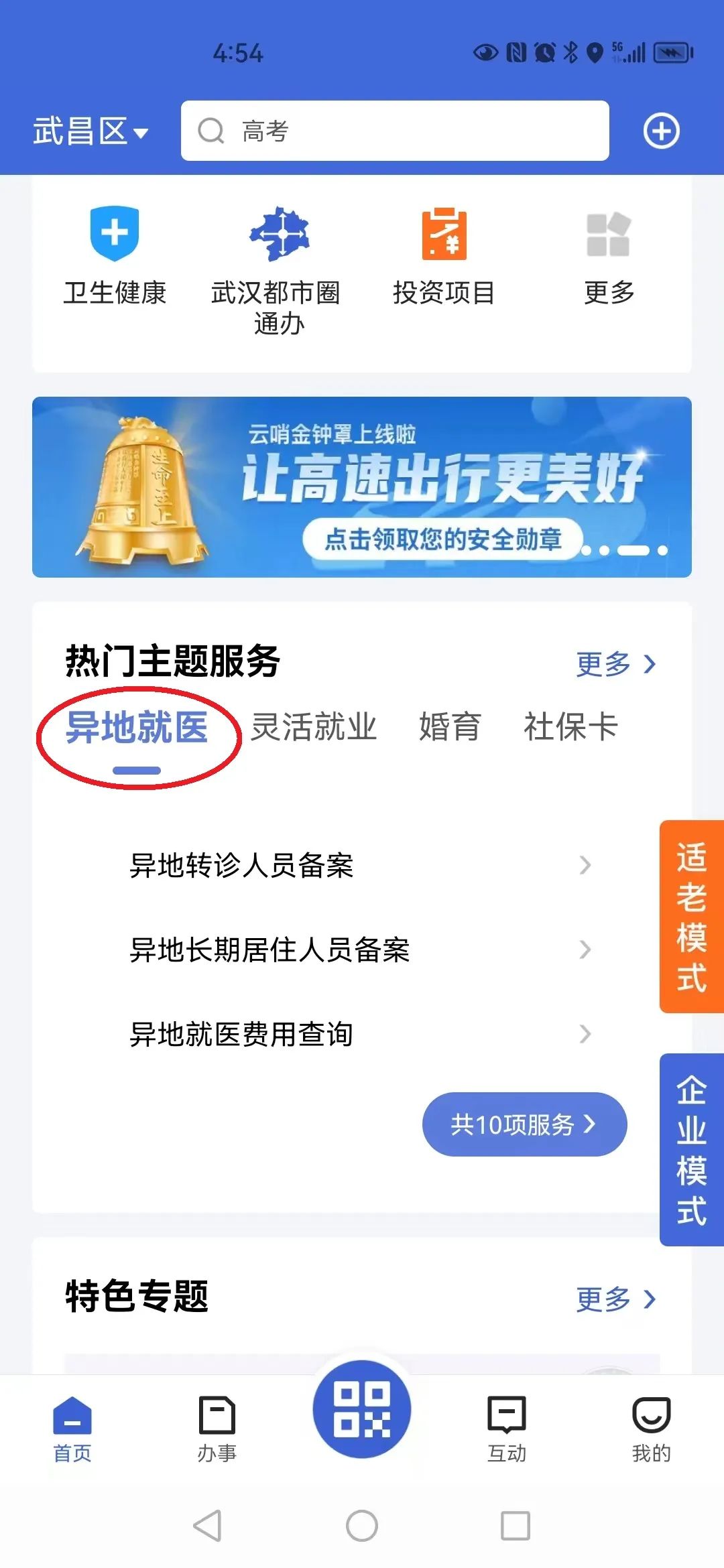 选择“异地就医”