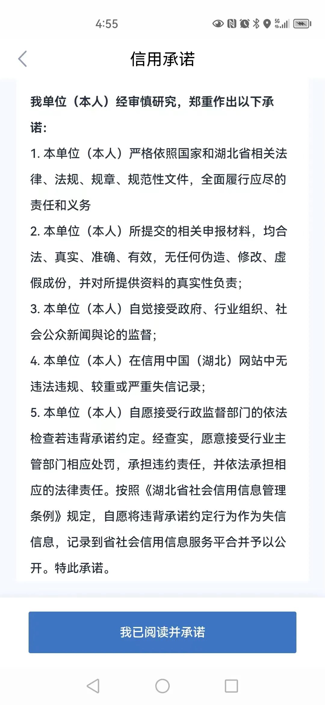 后点击“我已阅读并承诺”