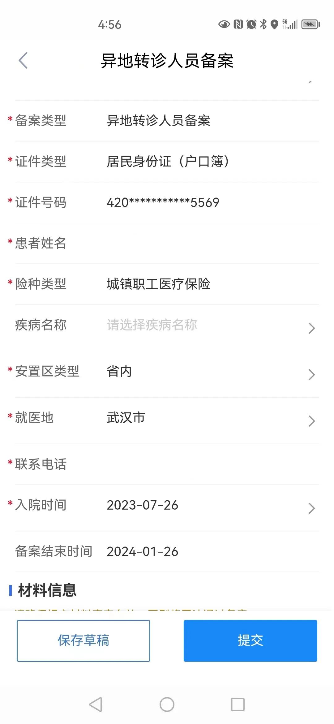 2.上传相关证件时,若无“转诊转院证明材料”,可上传住院证。