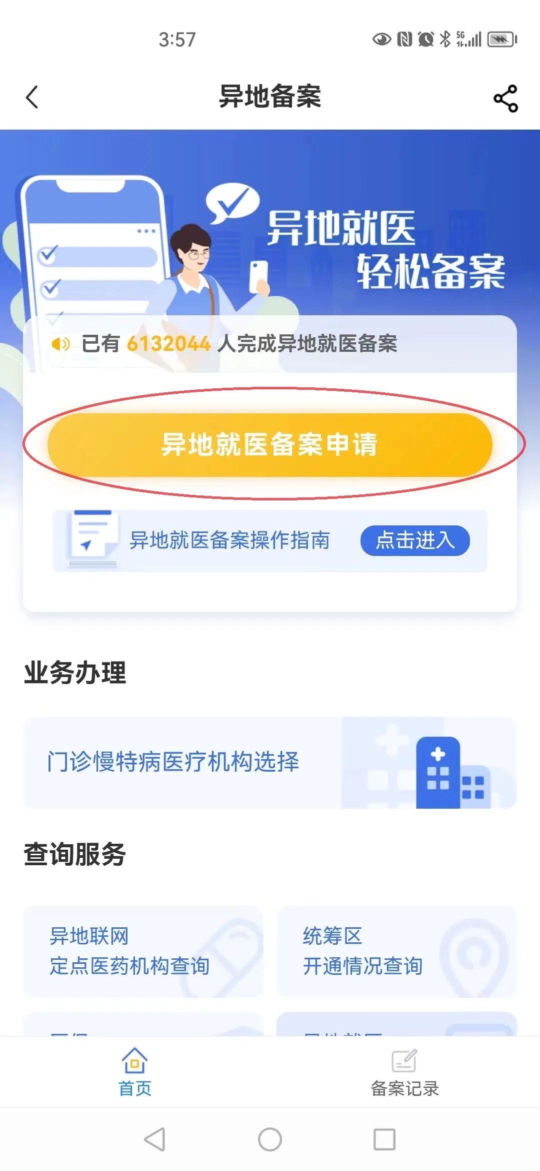 点击“异地就医备案申请”