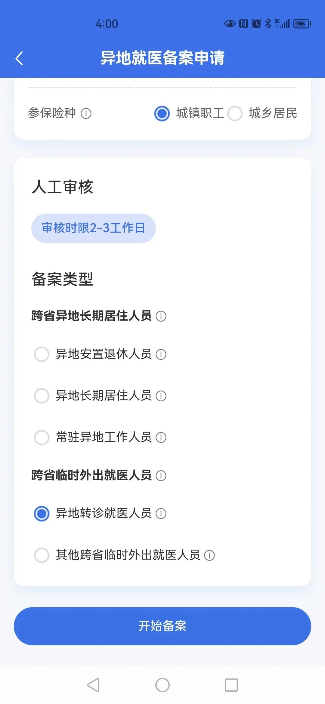选择“异地就医备案类型”