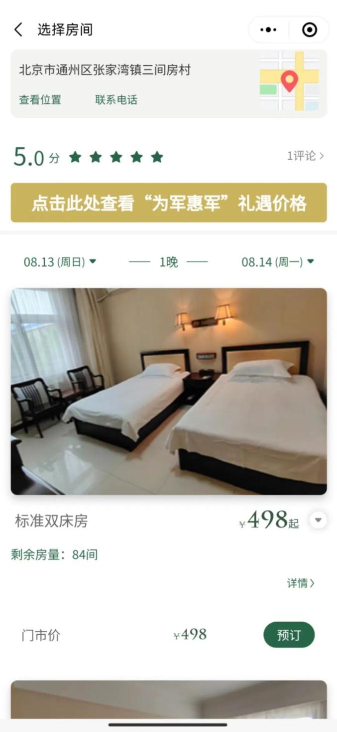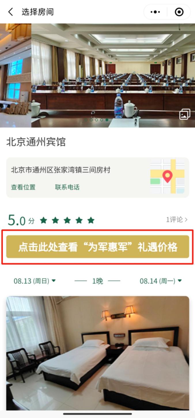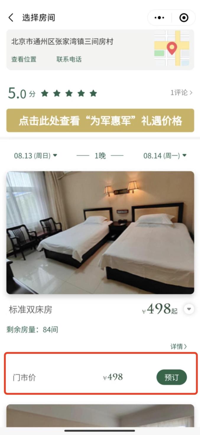 享受“为军惠军”礼遇价格的客人,按照展示的“门市价”价格进行预订