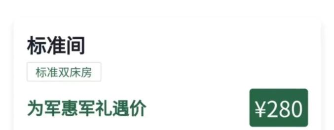 2、为军因私出行价格针对酒店基础房型执行固定价格,包括酒店标准单人间、标准大床间和标准双床间,其他房型价格按照酒店官网和其他公开渠道公布的实时价格的五折执行。