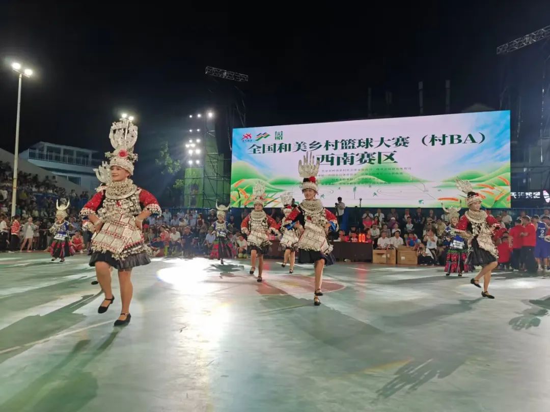 开幕式上,四川苏雄镇对阵重庆沙坪镇、贵州尚重镇对阵云南金山镇一队,为观众们带来了精彩的乡村篮球对决。